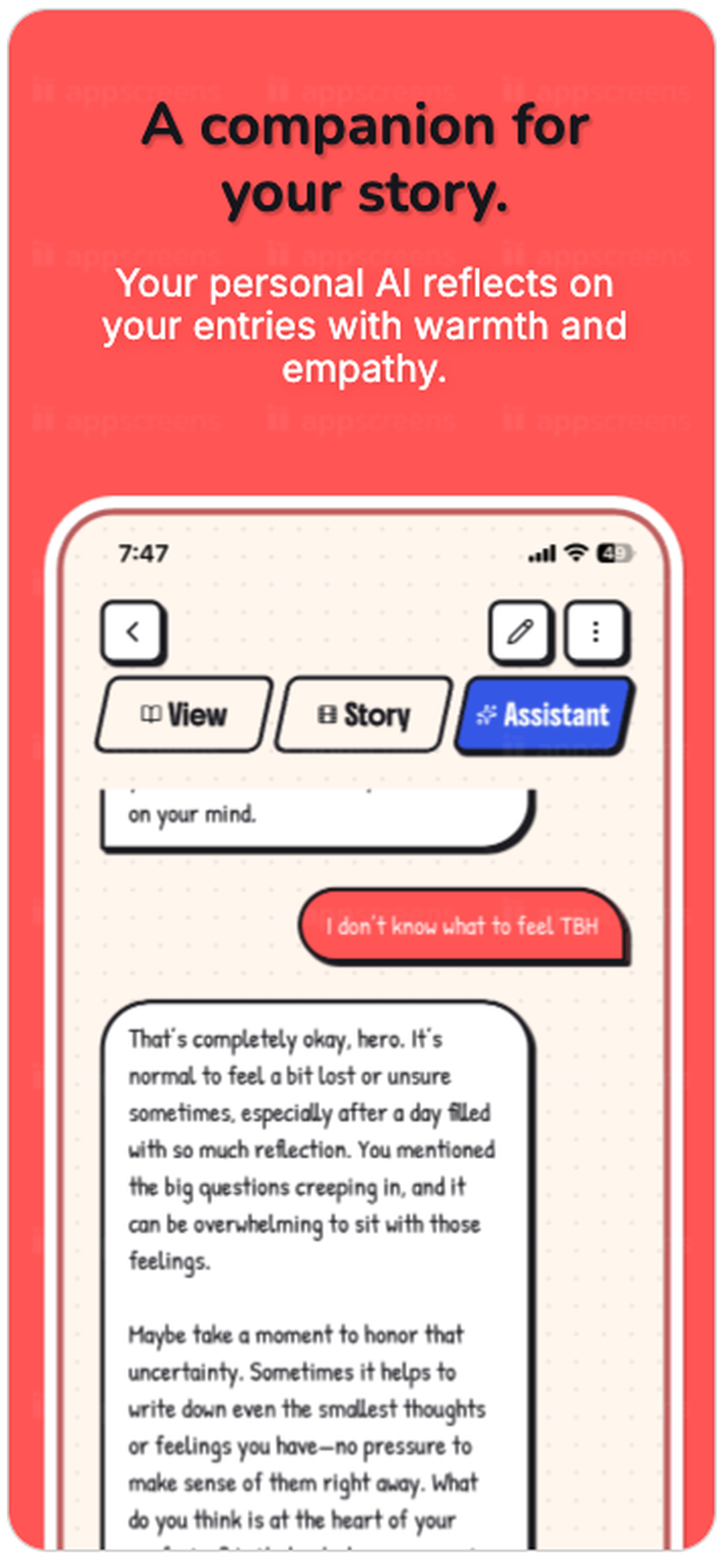 At the end of each arc, AI reflects on your month — mood highs, recurring themes, and what made your best day special.