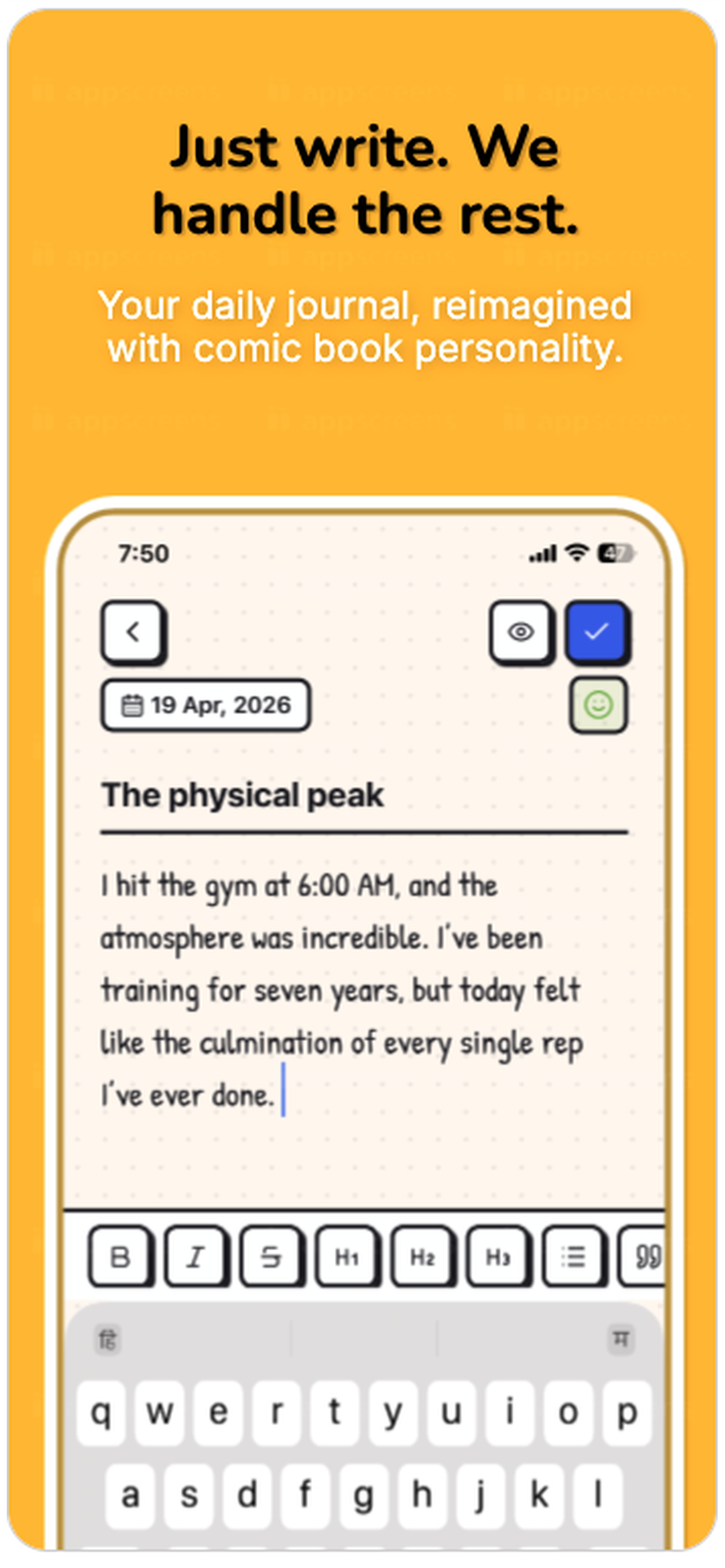 Write once a day. Build your saga one chapter at a time. Moods, memories, and moments — all in one place.