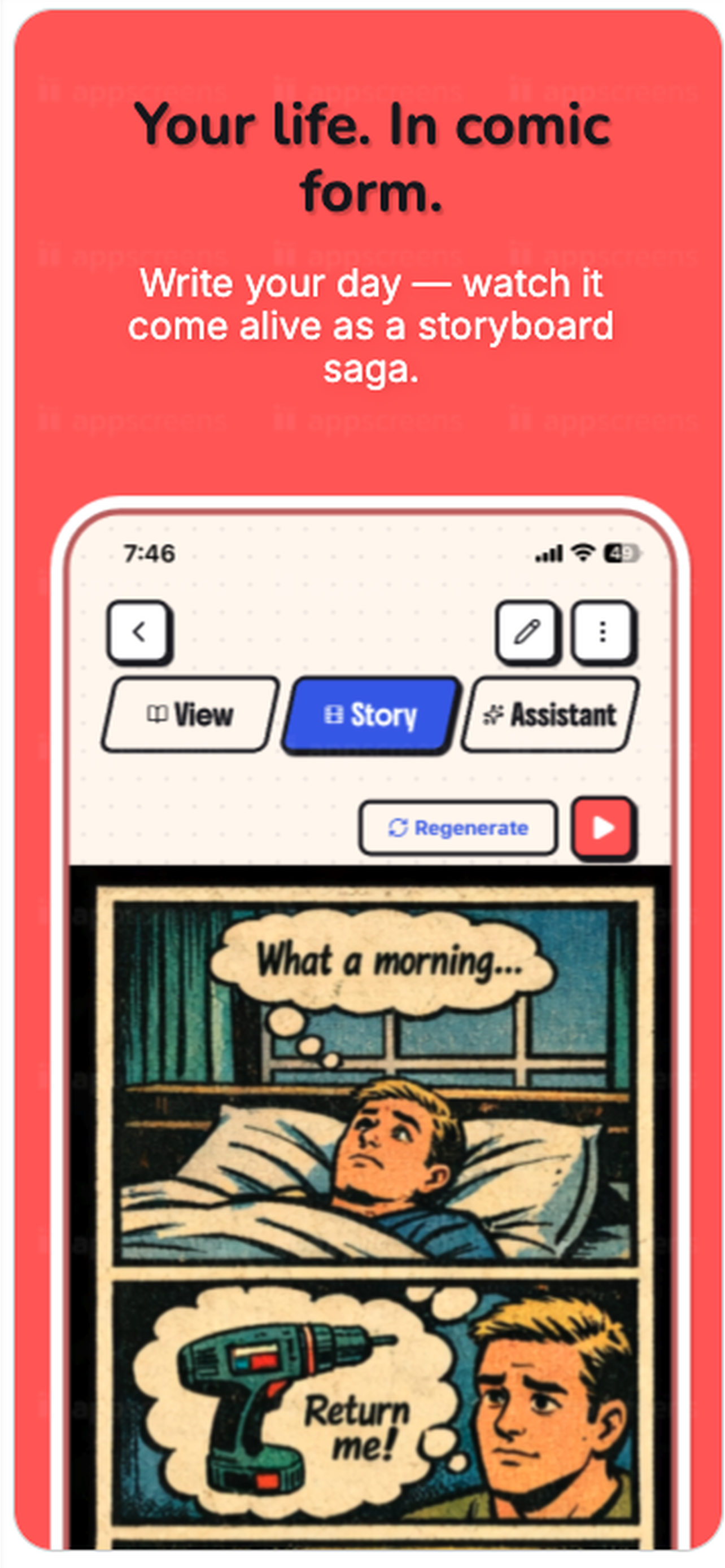 Write your day. Watch AI turn it into a comic book storyboard. Hear it narrated in a warm, cinematic voice. Relive every chapter of your life.